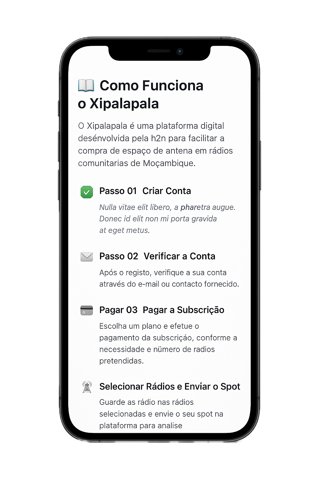 Crie uma conta de utilizador na plataforma Xipalapala.